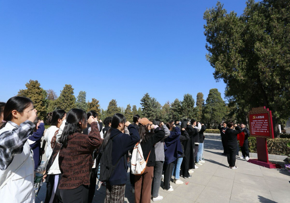 组织师生党员赴太原双塔革命烈士陵园开展“缅怀革命先烈,传承红色精神”清明祭扫活动。