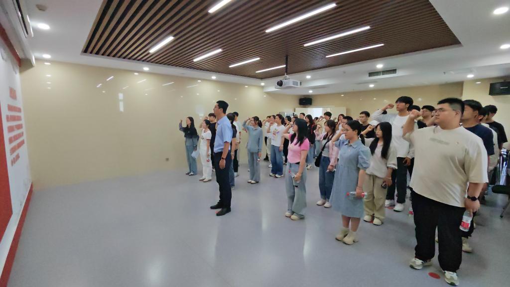 随后,全体人员来到清徐廉政教育基地,系统参观各主题展厅。触目惊心的贪腐案例纪实、声泪俱下的忏悔录影像、寓意深远的廉洁文化展品,构建起全方位、多角度的警示教育体系。一个个真实案例揭示了腐败对个人前途、家庭幸福和社会发展的毁灭性打击,让党员们深刻认识到“守住底线、不碰红线”的重要性。庄严的宣誓仪式将活动推向高潮,毕业生党员整齐列队,面向鲜红党旗重温入党誓词。“我志愿加入中国共产党……”铿锵誓言在基地内久久回响,字字句句凝结着对党的无限忠诚与为共产主义事业奋斗终身的坚定信念。