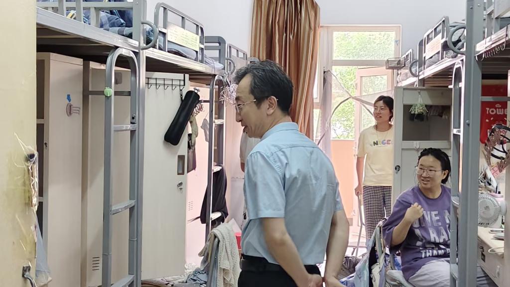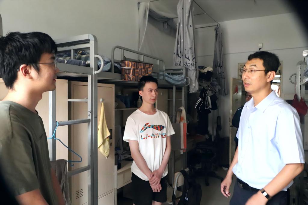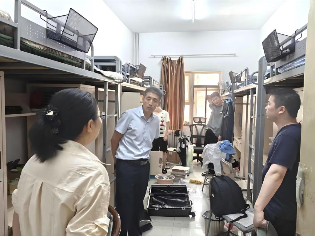 走访过程中,院领导们还特别关心毕业生的生活细节和思想动态,仔细查看宿舍环境、关切询问行程安排,叮嘱同学们在离校期间务必注意人身财产安全、文明有序离校,以良好的精神风貌开启人生新篇章;深情嘱托毕业生们在奔赴五湖四海后,要常与学院、老师保持联系,常回母校看看。
