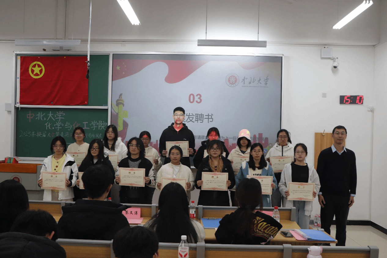 大会伊始,上任团委副书记薛梦迪作工作总结报告,系统回顾了过去一年学生组织在团建、志愿服务、社团文化等方面的扎实工作举措与丰硕成果,同时向长期支持学生工作的师长、携手奋进的伙伴们致以诚挚感谢,并送上美好祝愿。随后,蔡文涛为上一届学生干部颁发聘书,这份荣誉不仅是对他们过去一年辛勤付出的充分肯定,更承载着学院对青年学子的深切关怀。