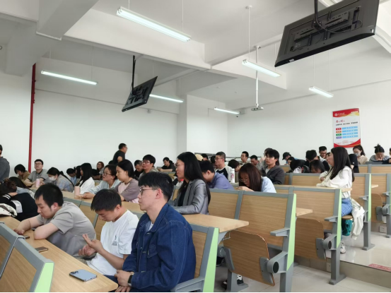 郭老师指出,长期以来,传统含能材料始终面临能量与安全性难以平衡的困境,而功能基元理论恰似一把“金钥匙”,为材料研发指明方向,通过指导分子结构设计优化,可精准调控含能材料的性能,实现能量释放与安全稳定的有机统一。郭老师以幽默风趣的语言,深入浅出地讲解了功能基元的基本原理及应用场景,阐述功能基元的核心概念,将其与材料设计紧密结合,系统论述了功能基元在材料设计中的关键作用,并讲述了如何创制高能钝感含能材料设计。他巧妙运用生动直观的图表,配合凝练精准的语言,将前沿的电子结构晶体学新方法抽丝剥茧,让晦涩的理论知识变得清晰易懂。郭老师的前沿研究成果与独特见解,为在场师生打开了高能钝感含能材料研究的全新视野,赢得了阵阵热烈掌声。