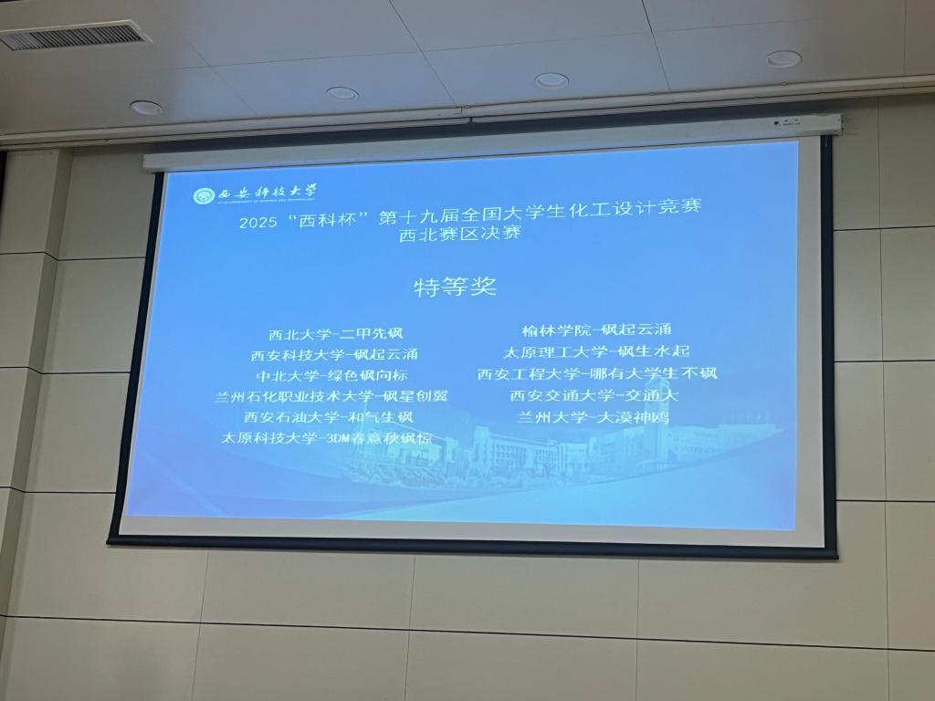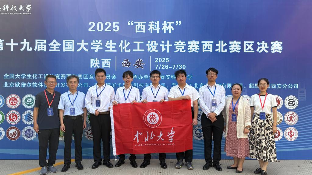 2025年7月26日—7月30日,由中国化工学会、中国化工教育协会主办,西安科技大学承办的2025年“西科杯”第十九届全国大学生化工设计竞赛西北赛区决赛在西安科技大学成功举办。中北大学由胡志勇副院长带队,竞赛指导老师王艳红、马忠平、郭婧、董婷带领“绿色砜向标”团队(参赛学生:(朱磊、刘海贤、豆禕帆、刘俊彦、魏晨涛)参加了此次竞赛,并获得西北赛区特等奖及“工程图纸”专项奖。同时,教学副院长胡志勇教授(竞赛委员会副主任单位)代表全国大学生化工设计竞赛西北赛区竞赛委员会在开幕式致辞,在闭幕式上代表中北大学申请并获得第二十届大学生化工设计竞赛西北赛区决赛承办学校。