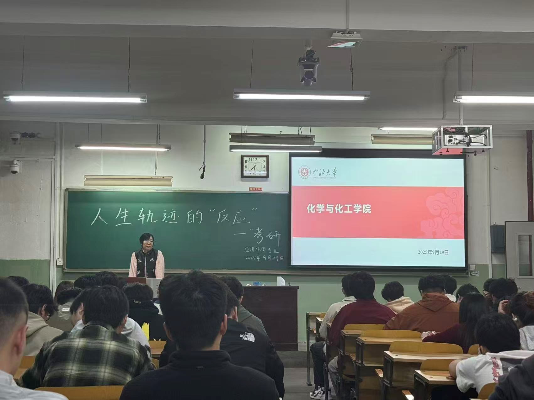 部署会结束后,化学工程与工艺、应用化学、能源化学工程、制药工程、生物工程5个专业迅速召开考研动员会。会上,各专业负责人结合本专业就业数据,详细分析不同就业方向的发展前景,同时深入解读 2026 年考研报名流程、初试科目调整、复试评分标准等政策要点;还通过数据对比,展示上一年度各专业考研录取率 —— 其中化学工程与工艺专业考研录取率达 38%,应用化学、生物工程、制药工程等专业多名学生考入 985211 高校,用真实案例为学生树立信心。
