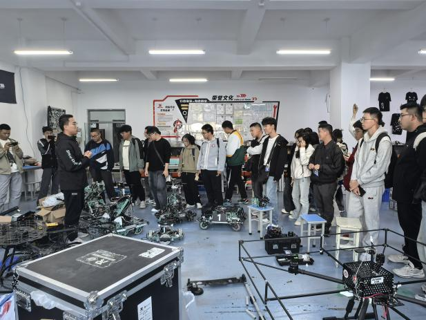 在创新创业实践中心,同学们在指导老师的带领下,参观了各学生团队的工作室与成果展区,全面了解了学校提供的全方位创新创业支持服务。身边同龄人的鲜活案例与实干成果,极大地激发了新生早立志、勇尝试的创新热情。