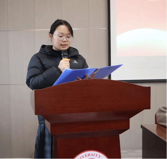随后,往届升学学生代表安永溢结合自身备考经历,围绕“心态”与“坚持”与在场同学展开交流。他坦言冲刺阶段出现焦虑、自我怀疑是正常现象,关键在于“把焦虑转化为行动”,保持自己的复习节奏,不盲目攀比,也不轻易否定自己。他鼓励学弟学妹们在最后关头“精准发力,不放弃”,接受过程中的不完美,稳步走向终点。2022级考研学生代表朱可欣在发言中表达了对学院领导、老师的感谢,并代表全体考研学子庄严承诺:在冲刺阶段将做到勤学苦练、持之以恒,科学备考、劳逸结合,以最佳状态迎接挑战,不负青春、不负期望。