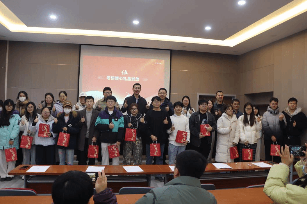 大会最后,学院领导与班主任共同为考研学生代表送上“考研暖心礼包”,温暖氛围洋溢全场。此次动员大会不仅为考研学子注入了信心与力量,也体现了学院全员育人、全程护航的工作理念。冲锋的号角已经吹响,期待化工学子在2025年考研中金榜题名,为个人争光、为学院添彩!