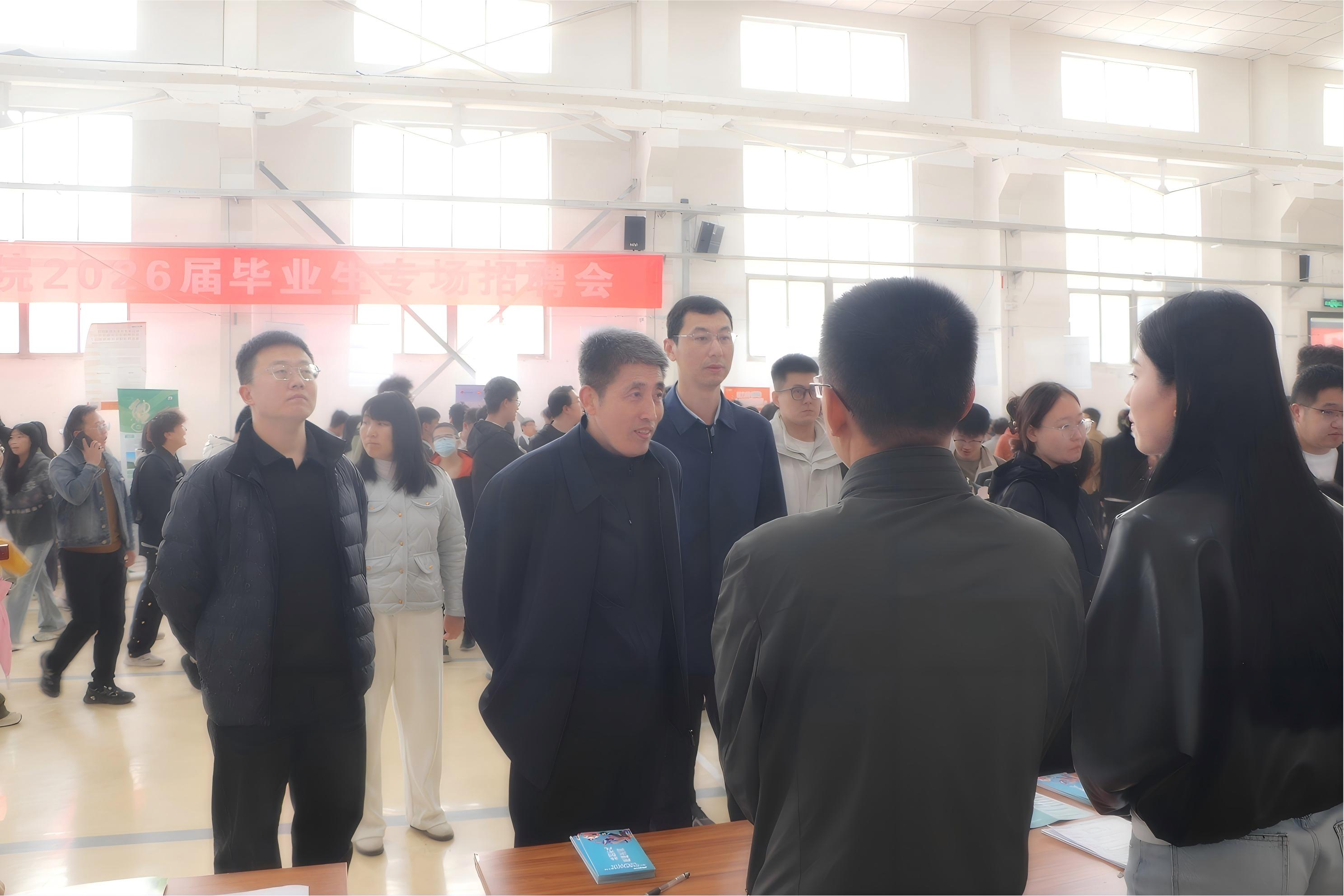 学院党委书记吴志远、副书记蔡文涛深入招聘会现场,与众多企业开展深入交流,详细了解行业发展趋势、人才需求标准及岗位供给情况,并达成多项合作共识,为拓展毕业生就业市场、深化校企合作奠定了坚实基础。